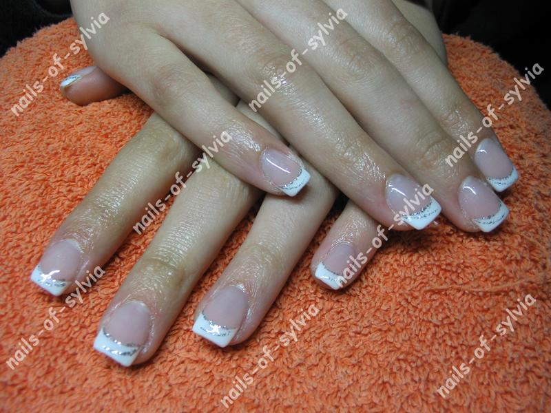 pose de cet aprem : pose au chablon: rallongement au constructor clear,rallongement de plaque avec le confort mask,french avec l'ultrawhite,construction avec l'easy2,déco au flexbrush pailletté argent,finition sealer uv le tout onglerie.be