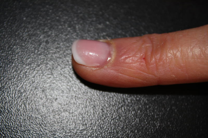 Voici les photos, sur la première le gel se casse et sur l'autre je pense que c'est un décollement mais pourtant je suis loin des cutis, non ??!!