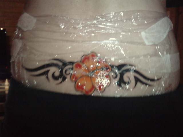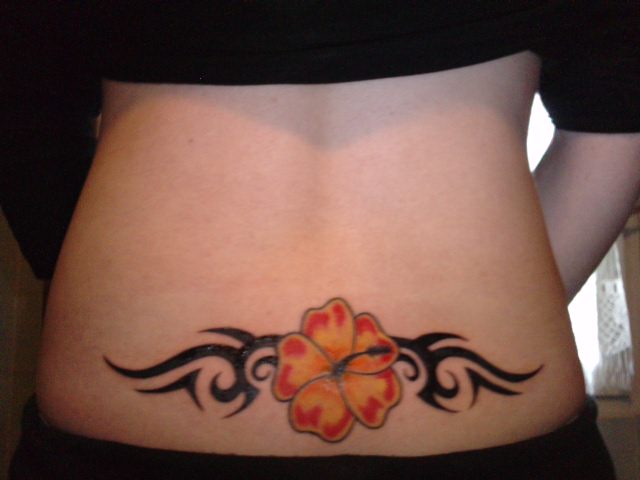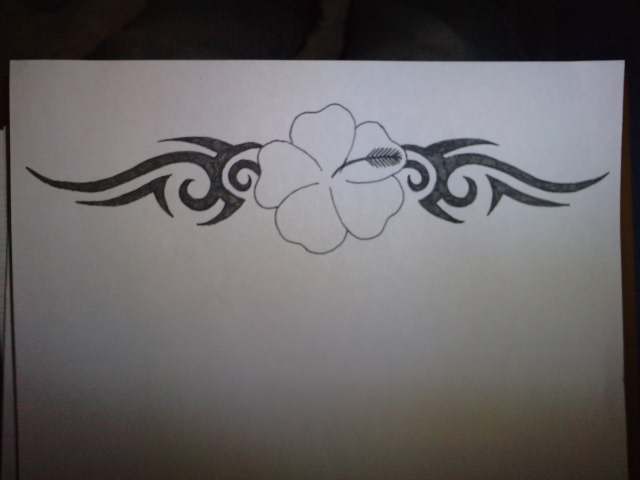 Voila le tatouage que j'ai dessiné moi meme et que mon tatoueur ma reproduit dans le bas du dos :coeur: que mon chéri ma offert pour noel :) Un tribal avec un hibiscus