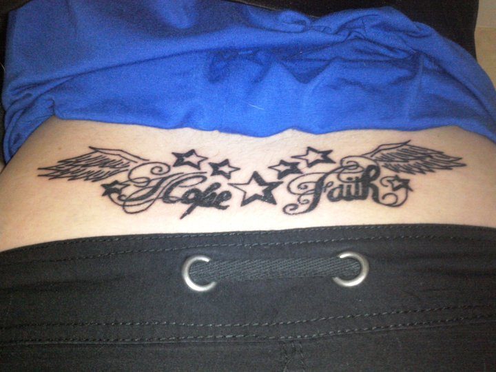 - le deuxieme : en bas du dos, qui signifie la foi et l'espoir, et je peux vous assurer que j'ai eu mal lol