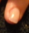 J'ai une question: peux-ton éviter le petit rebord dû au bourrelet du doigt? J'ai mis une portion de la photo de Namiss pour expliquer ce que je veux dire car c'est pas évident à mettre en mots! (et surtout ne prends pas ça pour une critique de ta pose Namiss hein!!!) - vous voyez, le rétrécissement de la forme de l'ongle, au lieu d'une parallèle bien droite? Y-a-t'il moyen d'éviter ça? Est-ce que ce serait différent avec de la résine, ou bien est-ce inévitable?