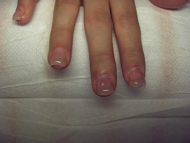 J'ai une cliente chez qui mes poses tiennent pas ( une rongeuse) alors que sur les autres ça tient. J'ai fais un pas à pas en photo pour voir si je fesais une erreur et je lui ai mis une bonne couche de gel.