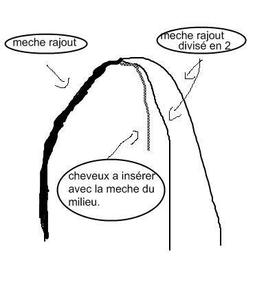 Alors il faut prendre une meche de rajout, a partir du millieu, divise la meche en 2 du coté droit.