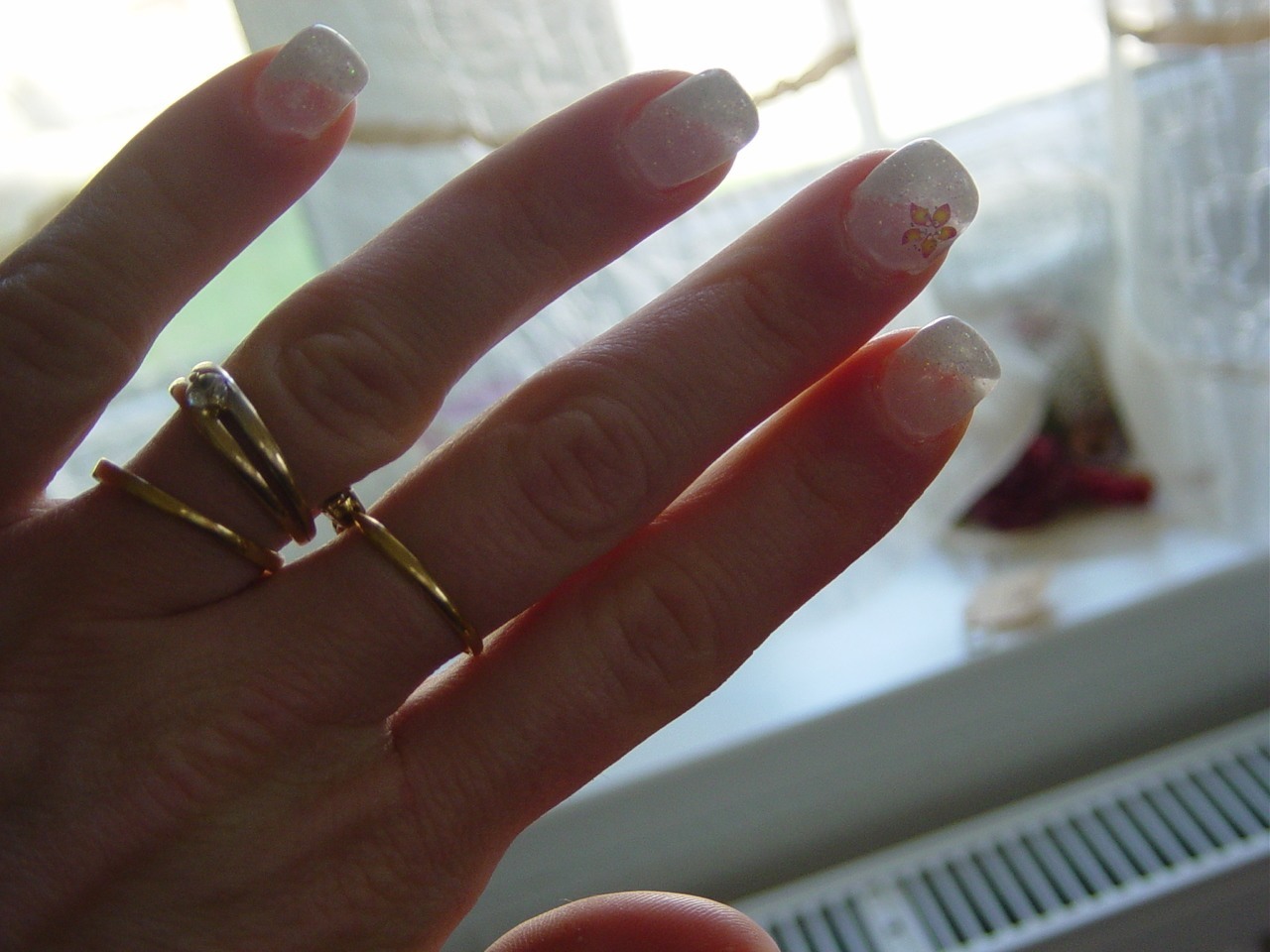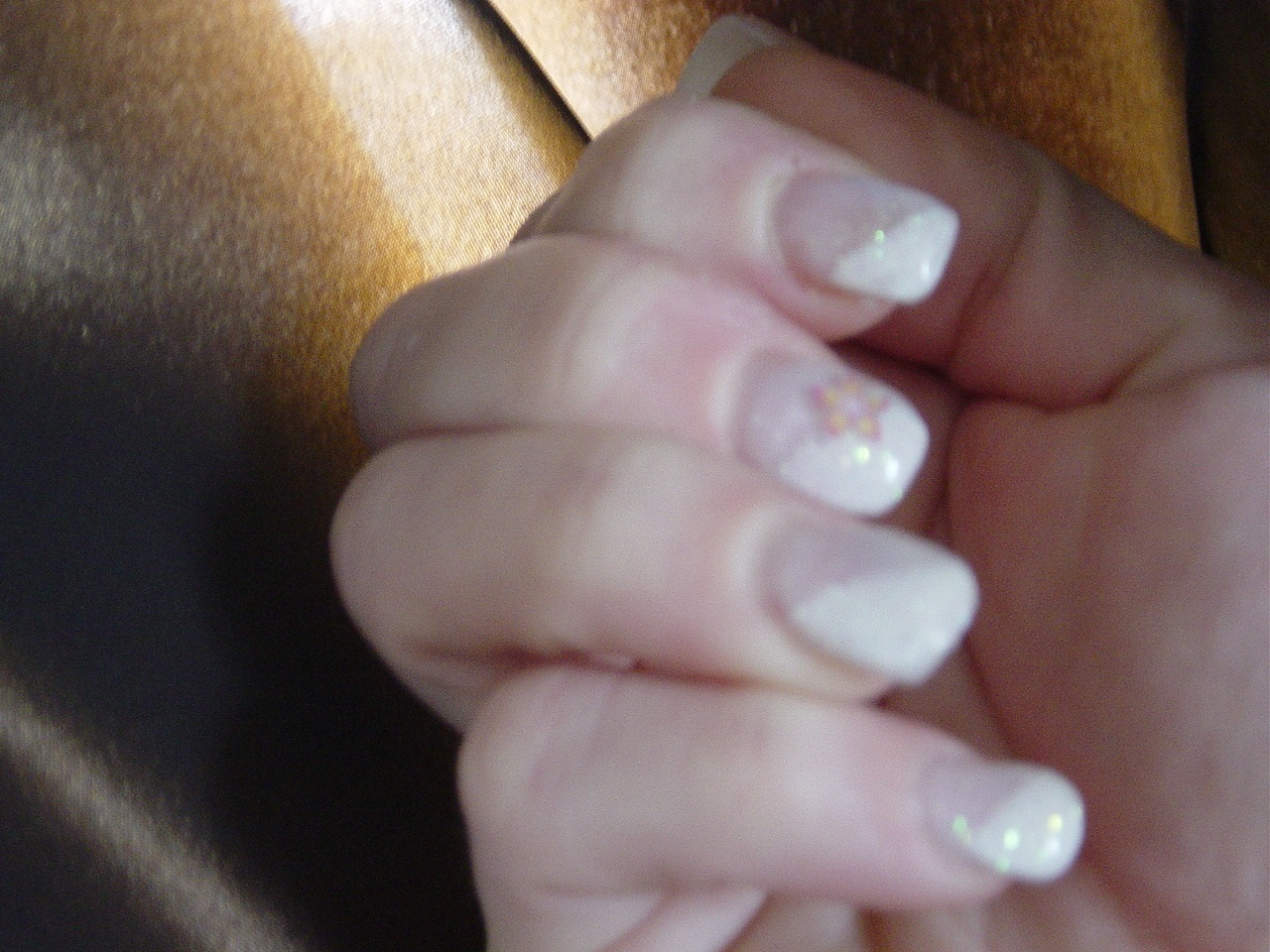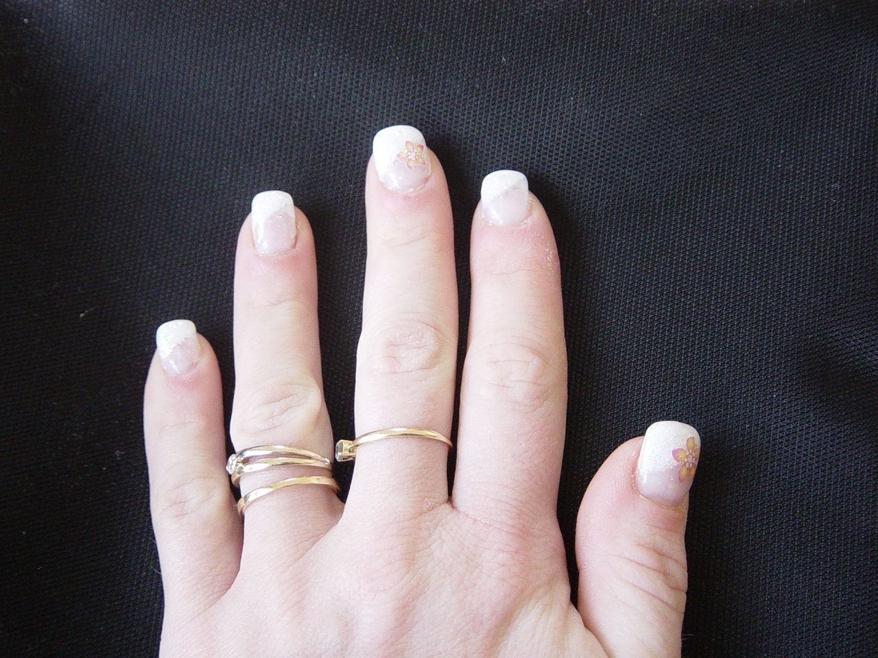 Ben je te dis pareille que Crystalia, en plus on dirait que tu as déjà des décollements sur les côtés (ta pose date de quand?) attention au limage, sinon cpotés décos j'aime assez....