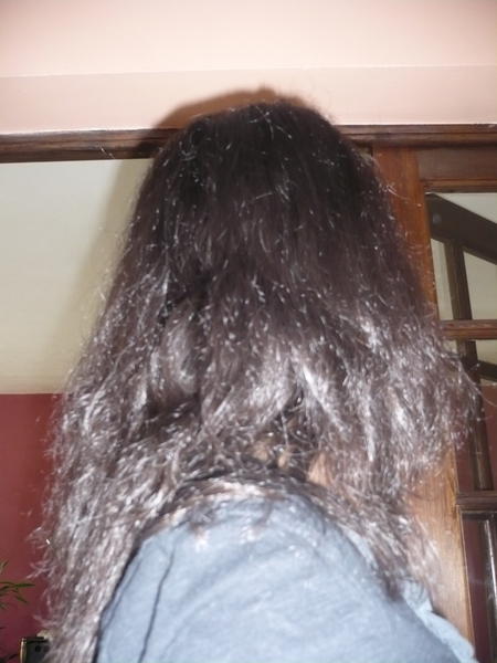 Ensuite shpg qui mousse et séchage naturel.... mes longueurs ont un aspect mousseux pas beau, au bout de quelques heures l'aspect a changé le chv est ++ détendu moins ébouriffés..