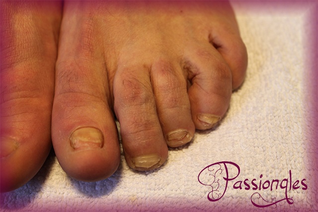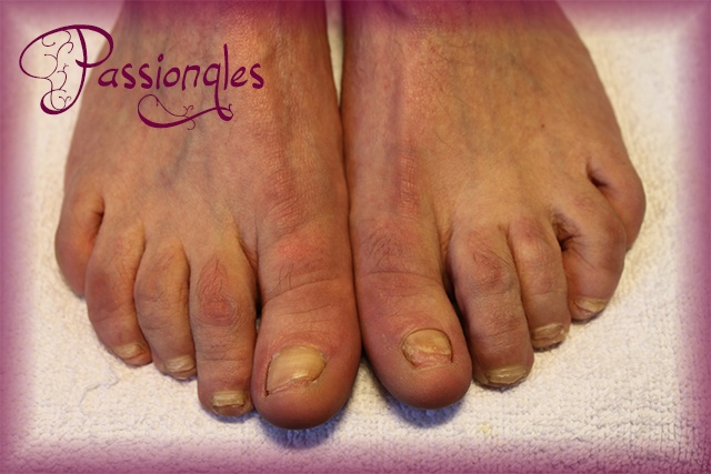 Voici l'exemple d'une reconstruction en résine pour les pieds ... la cliente était ravie (sur la construction j'ai posé un vernis permanent)