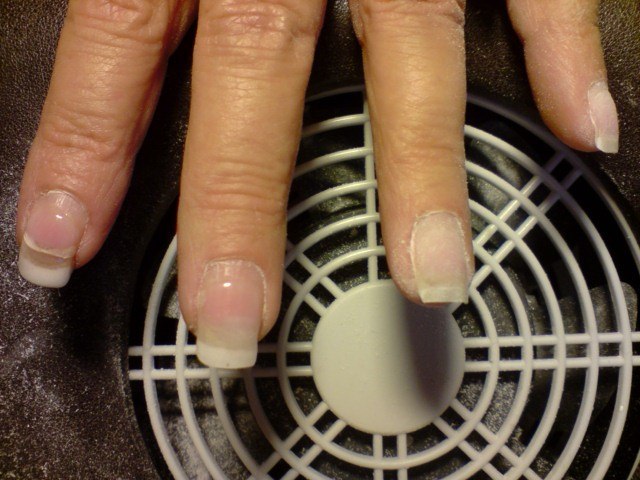 voici ce que j'ai decouvert, j'ai pris la photo apres le debut du limage car forcement j'ai tout enlever.... malgré cette cata elle a qd meme voulu que je repose dc je n'ai pas mis de cover pour voir l'evolution de son ongle cassé au cas ou........sa plaque est bien rouge comme vous pouvez le voir.....aie aie aie