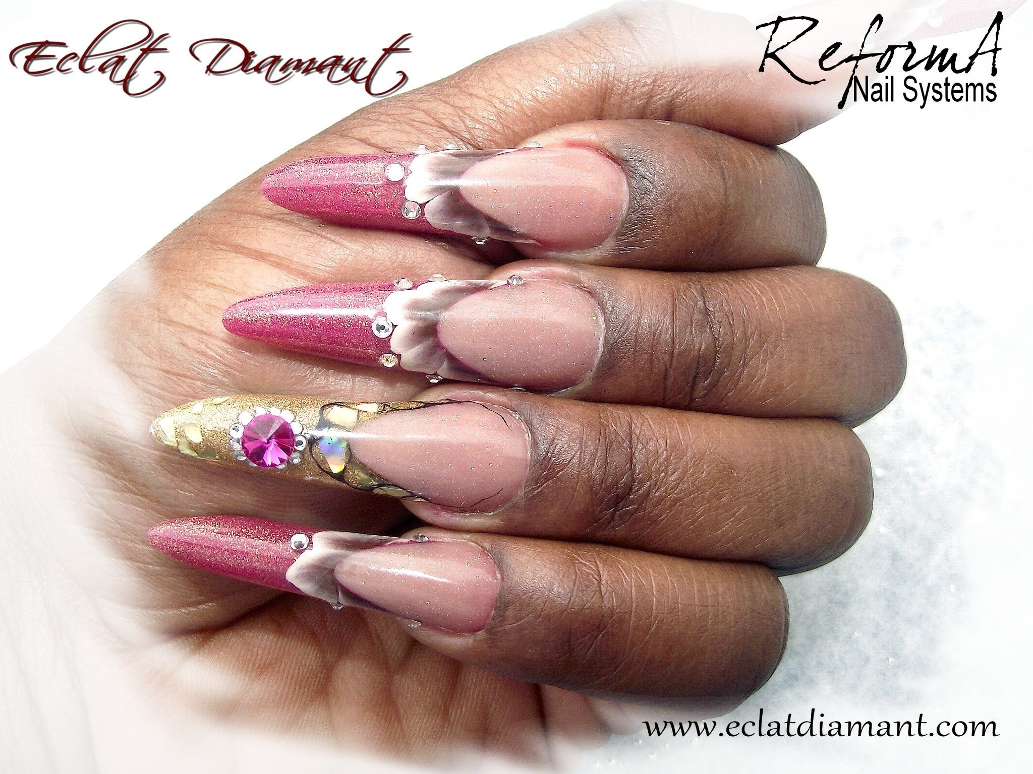 La french est un mélange de rouge et pigment or d'où cet délicieux reflet ^^ . J'ai également rajouté des poussières de paillettes dans mon cover (mélange de peach et pink) .