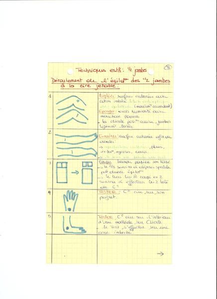 voici mes fiches mais pour le moment en cire jetable pour les demi jambes!