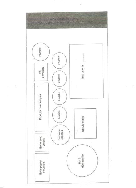 C'est très simple tu prend une serviette de dimension 50*90 cm tu la pose et tu met tous tes produits dessus le jour de l'examen c'est ce qu'il faudra faire pour une question d'hygiène. Pour éviter que les pinceaux ou tous autres produits ne soit en contact avec la table.