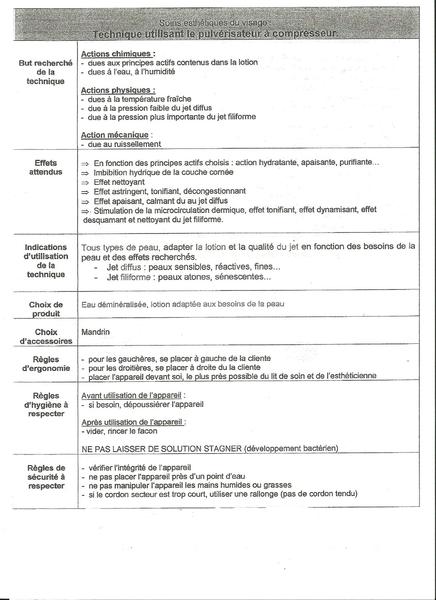 Je vous envoie la technique du gommage du visage et la technique utilisant le pulvérisateur à compression.