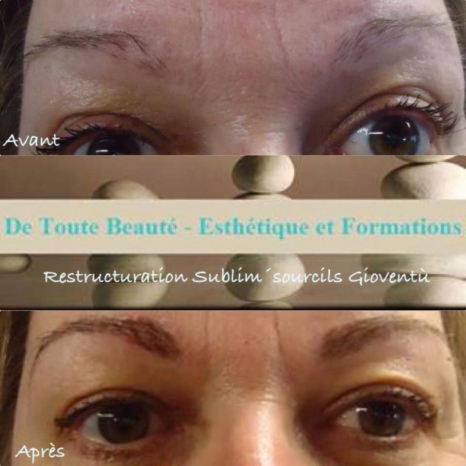 rholala ca me donne encore plus envie d'être en formation@Ibulle la restructuration sourcils c est le nouveau procédé mis en place par Gioventù pour redessiner une ligne inexistante, combler des manques et corriger des sourcils. On ne peut pas exposer la technique à part aux personnes qui viennent se former car le procédé unique et comme tu t en doute protégé. Je te mets une photo de la pose faite avec une de mes stagiaires. Afficher la pièce jointe 620235