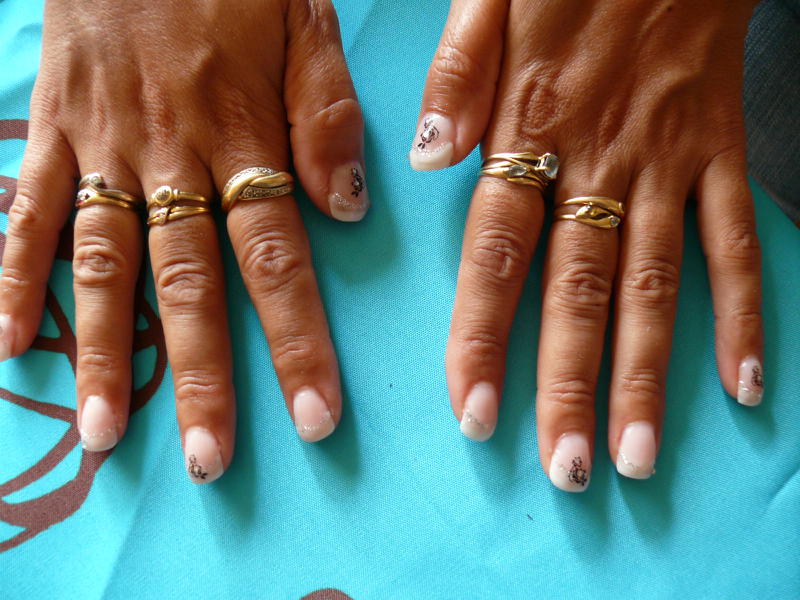 ca y est, je l'ai faite ma première pose sur ma première cliente... c'était laborieux , elle est quand même venu malgré son ongle fissuré (qui n'étais pas tant que ca d'ailleurs) ( ca faisait comme si elle se l'était un peu trop rongé)... y a bcp de défauts mais au final elle était contente. de plus, elle est venu avec une copine qui viendra pour que je lui fasse... et moi ca va un peu mieux maintenant... c'est fini... de plu j'avais pas très bien commencer, mes chablons ne tenait pas...
