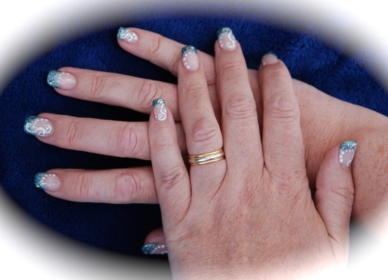 J'ai fini ma pose pour les vacances sur mes mains.... j'en ai bavé pour la main droite....tjrs la galère !!! Du coup, comme j'ai mis pas mal de tps, j'ai pas pu faire les pieds.... il va falloir que je trouve un moment .... je pars Mercredi en vacances !!