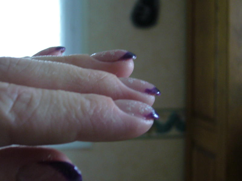 j ai limer ma french, mis du gel adhérent, une couche de cover gel de chez ongle24, gel violet pailleté de chez peggy sage et tampon konad ensuite gel de construction et gel de finition...