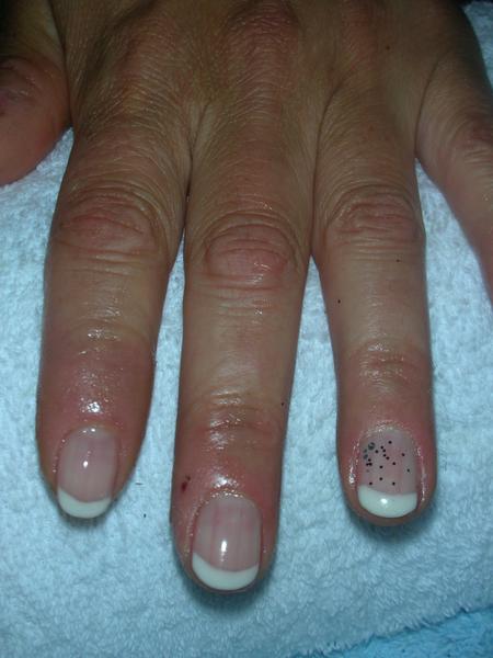 Dites moi ce que vous en penser,je me suis appliquer a essayer de mettre de la matiére,du moin j'ai essayer...Est-ce que le fait qu'il y est le bombé empêche le décollement au abort des cuticules??