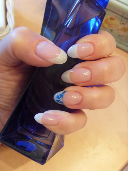Après ma pose violette, j'ai eu envie de simplicité (comme dis dans le titre), alors voici mon remplissage, une simple french blanche avec petite decos sur l'annulaire.