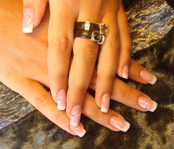 Une pose en gel, rallongement au mask, french sur chablons et petite déco.
