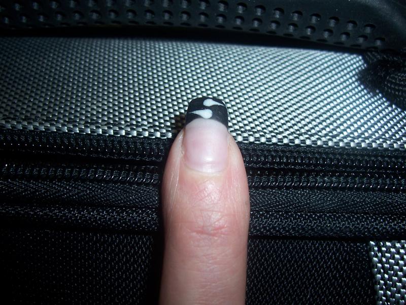 be en fait elle a les ongles rongés ou plutot bouffés mdr c'est le mot le plus adapté..et en fine couche on voit encore la demarcation..alors j'ai mis une grosse couche et c'est archi moche..je testerai en fine couche la prochaine fois..merci les poulettes...