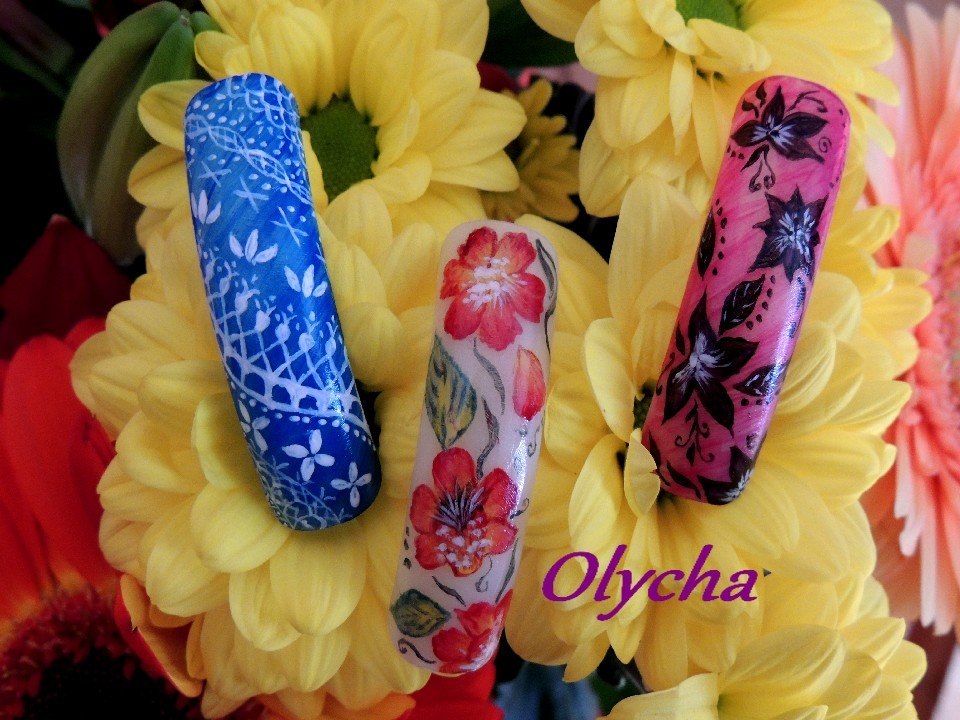 voilà comme dis dans le titre , je ne savais pas quoi faire donc j' ai sorti la peinture, les pinceaux et les capsules et là ben ... pas d' idée du coup essai de one stroke , autant qu' en noir et blanc ça va que la couleur je galère plus , puis essai dentelle et la dernière ben il commençait à être vraiment tard