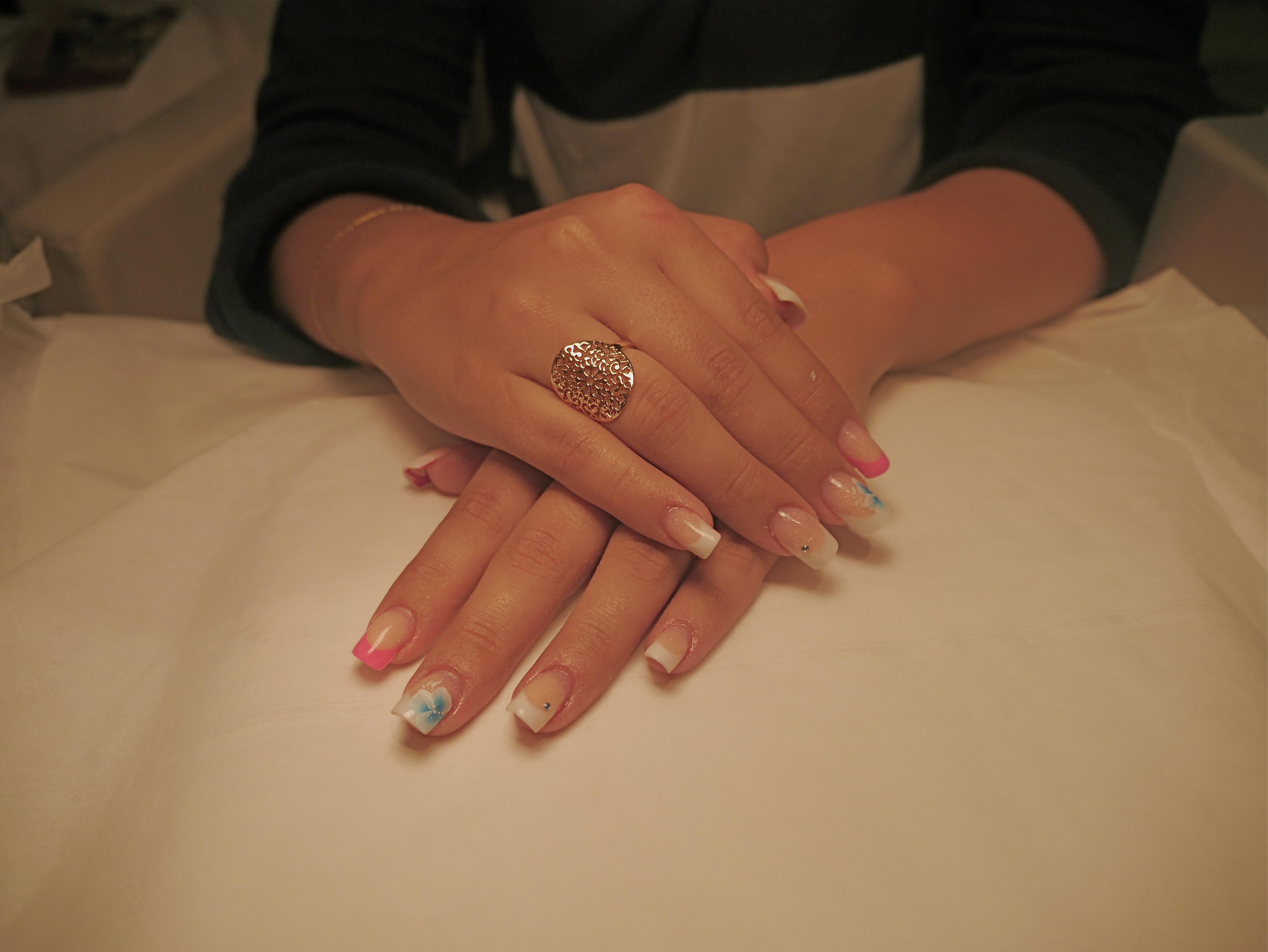 la seconde c est un remplissage a 3 semaines sur des ongles qui poussent vers le haut et qui sont evases autant vous dire COMPLIQUES...