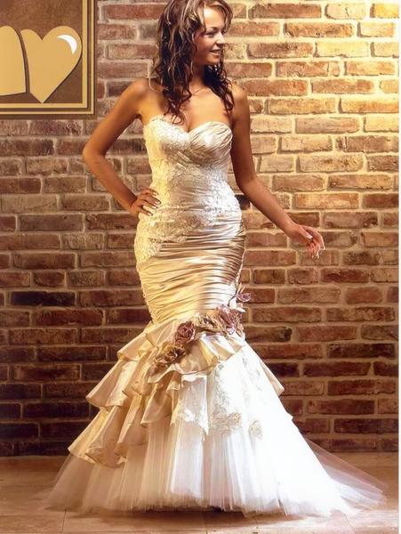 Un bustier collé à la peau jusqu'aux hanches est bien lorsque la mariée est fine sinon ça fait ressortir le petit ventre.
