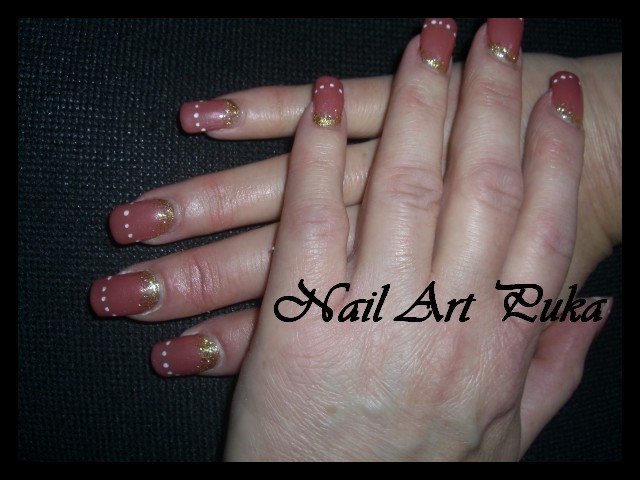 gel de couleur rose des bois, liner or et blanc construction en gel