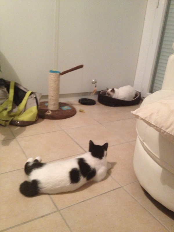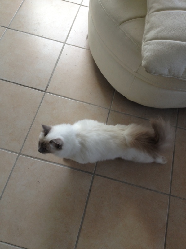 Haydi sort et tout. Elle va sur le canapé, sur l'ordi, elle se roule par terre et s'amuse avec les mouches.