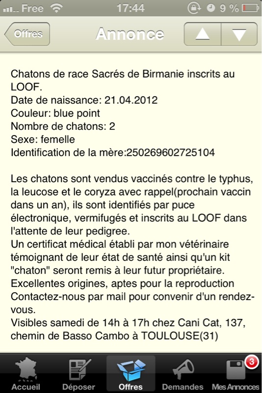 En plus elle a dit qu'elle m'envoyer le pedigree que lorsqu'elle aura vendue l'autre chaton. Donc pour l'instant je n'ai pas son pedigree donc pas d'expo …