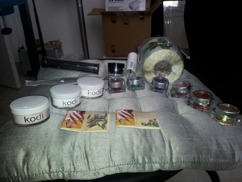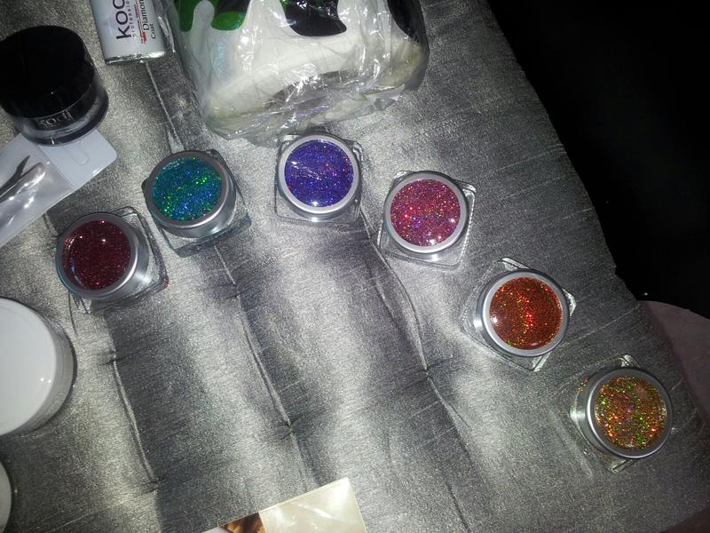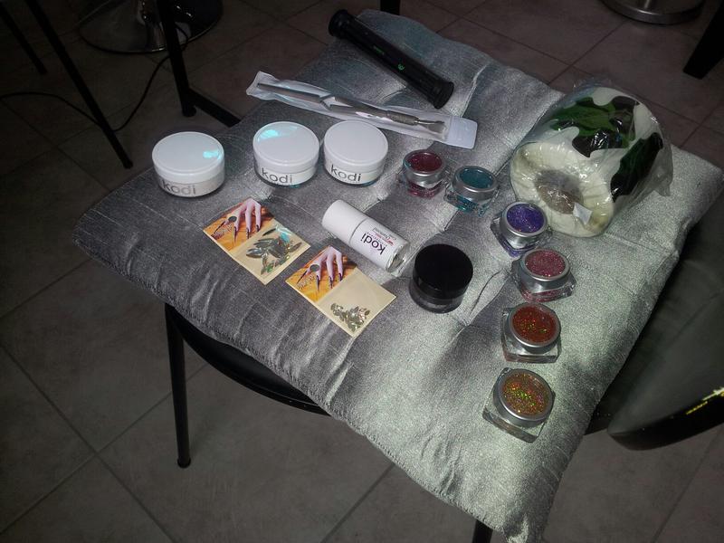 1 pinceau resine , Une cover pailleté Kodi , un top coat diamant Kodi ,