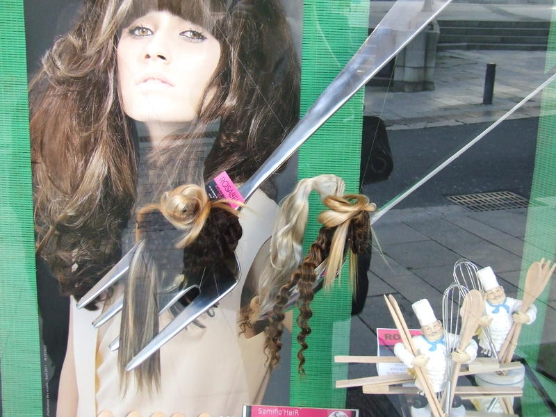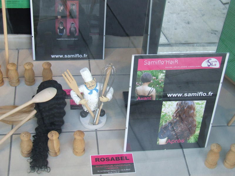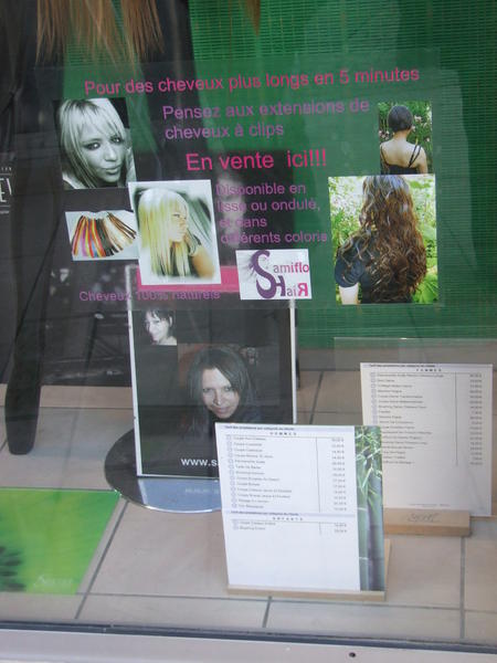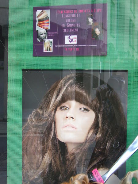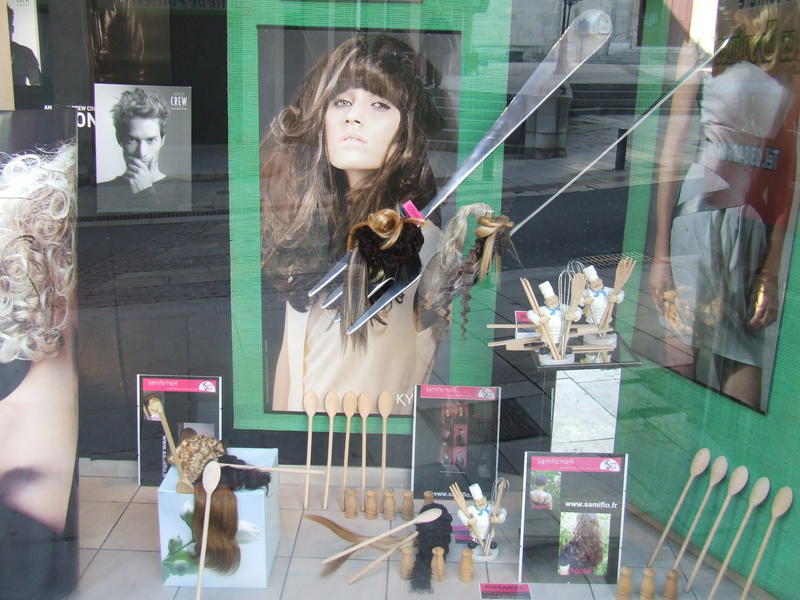 Voici la vitrine d'un de nos salon de coiffure dépositaire de notre marque