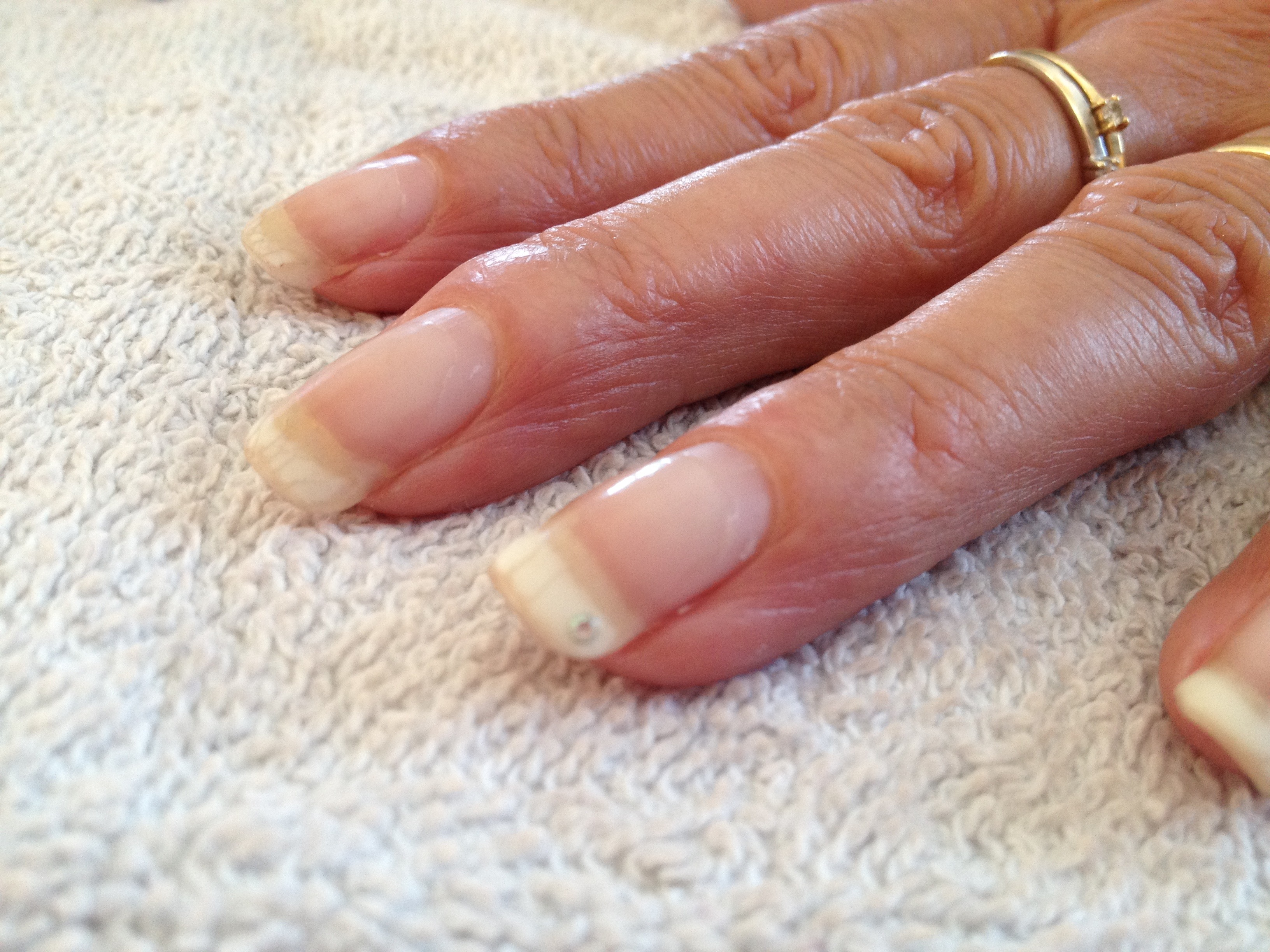 Pour faire suite à la conversation Poses vernis permanent Gel'in voici ma maman après trois semaine de gel saok off.
