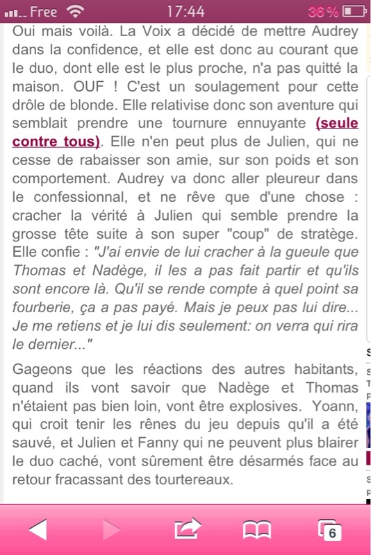 Audrey est au courant que nadege et thomas sont pas partis