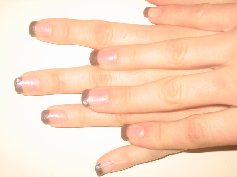 merci à toutes par avance qui me donneront leur avis perso sur ma pose!! french chocolat , gel de finition leger pailleté. et petit strass!! merci bcp !! besoin de savoir ou j'en suis pour pouvoir m'installer gs bisou et bne aprem!!!