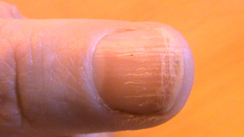 Et ici se sont les ongles naturels de ma mère où ça va pas du tout, ce matin elle est arrivée me disant , bon voilà j'ai travaillé dans le jardin et tout le gel s'est décollé, ce n'est pas la premère fois en plus, j'avais pourtant bien fait attention au cuticiles, aux peaux sur l'ongle et tout et tout mais le soucis c'est que cela se décolle tout???? J'ai mis des photos ainsi qu'une photo d'un de ses pouces qui est totalement ravagée après avoir perdu là aussi tout le gel.