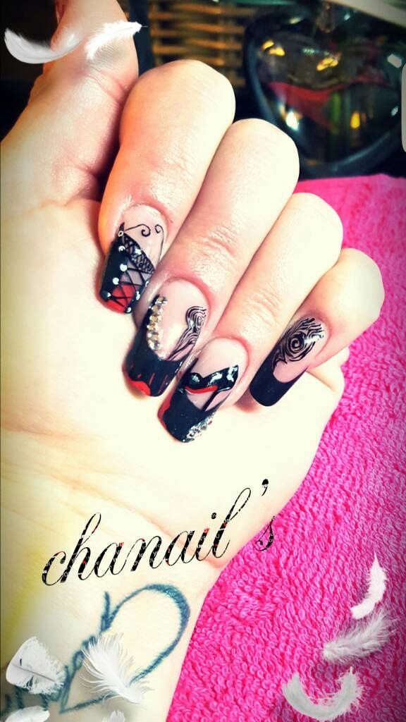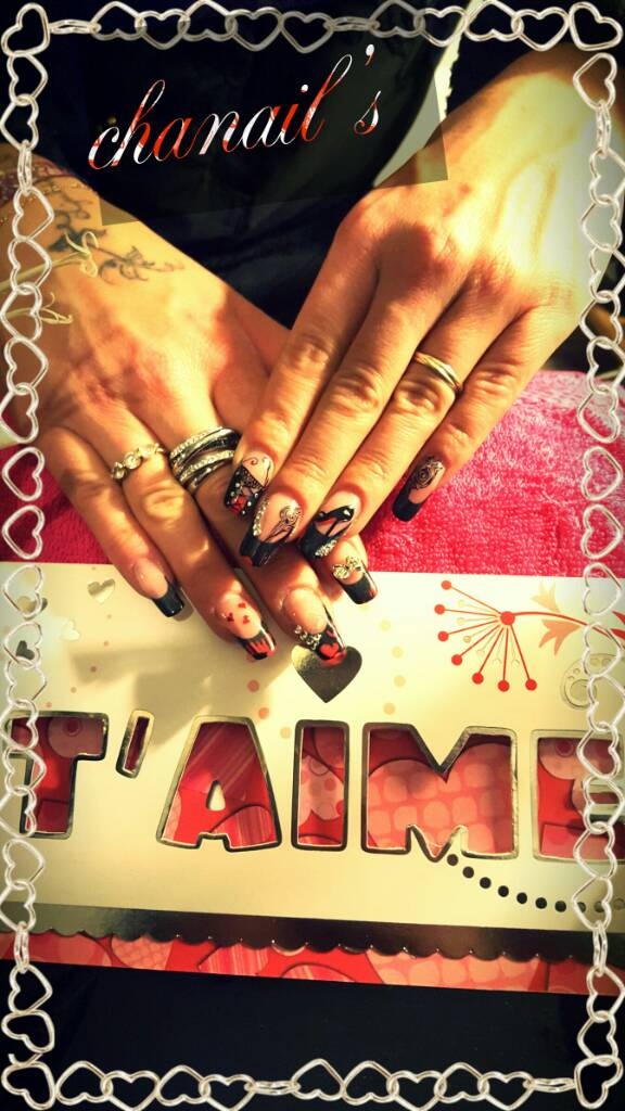 J'ai voulu faire un effet louboutin, donc french dessous rouge et noir dessus mais pas total à certain endroit ...