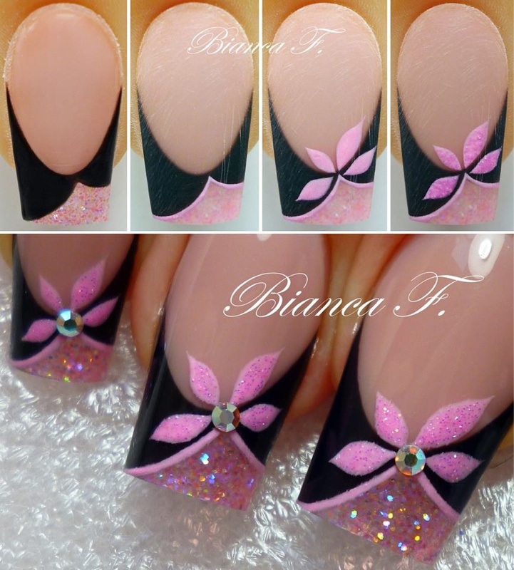 Ah oui ça je ne sais pas comment ça s'appelle, comme la technique du feuilleté p-e ? Les points noir c'est de gouttes de gel et les flèches c'est le sens dans lequel doit aller ton pinceau ou dotting pour faire une déco abstraite ou marbrée ;) je ne sais pas si je suis claire