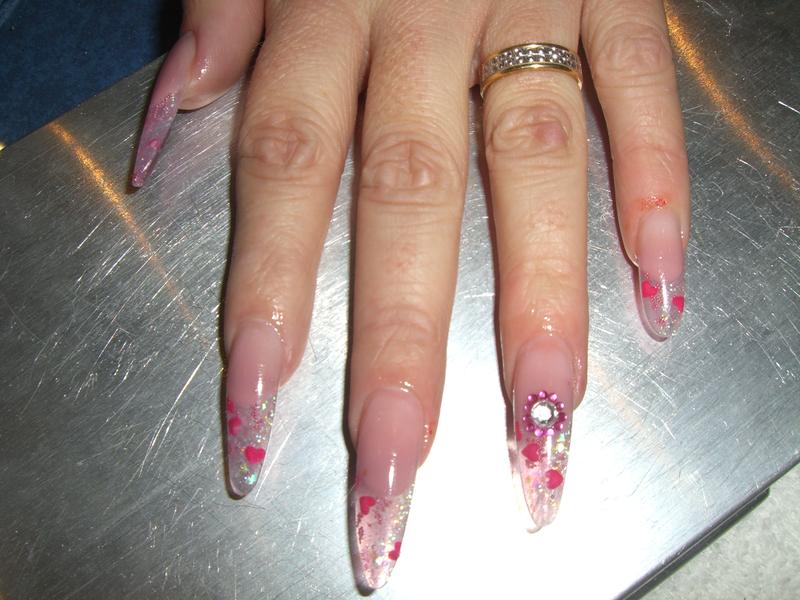 Re : stilettto coeurs et pailettes c est tres beau c est vrmt un art mais bon personnelment je ferai pas cette forme lol