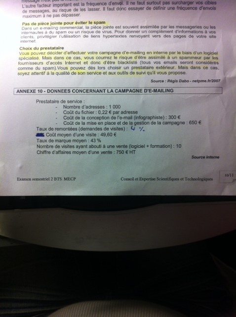 Et si tu pouvais à l'occasion me passer le sujet que tu as eu comme je passe la semaine prochaine mon examen blanc de la première année de BTS MECP option managementMerci beaucoup