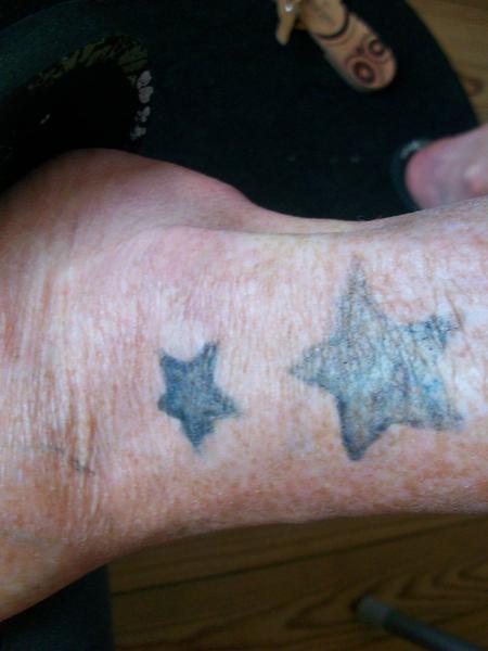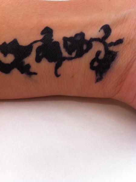 moi c'est pareil j'avais fait une etoile mais en mettant le sparadrap ca écrasé une branche donc hier au soir ratrappage de l'étoile et oui il faut mettre des gants j'ai une tache sur le doigt qui bien sur ne part pas moi ce n'est pas un cone mais un embout avec une aiguille (a bout rond et creux) qui se fixe sur le tube pour le moment le tatouage n'est pas très foncé mais il foncera en 24h env. donc a suivre