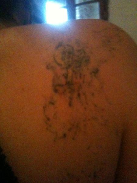jy ai penser aussi mais deja quil est gros ( un tatoueur ma dit qun recouvrement il fo quil soit un peu plus gros ) donc ca me fait refaire un gros tatouage et jai pas envie je suis tellement degouté que jai plus envie de refaire un tatouage je veu mon dos nickel !!!! snifff !!! et vous pensez pas ( je dit surement une betise ) que en gommant 3 foi par semaine et en le mettan bcp au soleil sa laiderai pas a partir ???