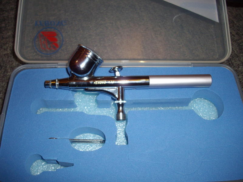 j'ai pris mon aerographe , le compresseur et la cuve que j'ai achete pour vider l'encre c geniale
