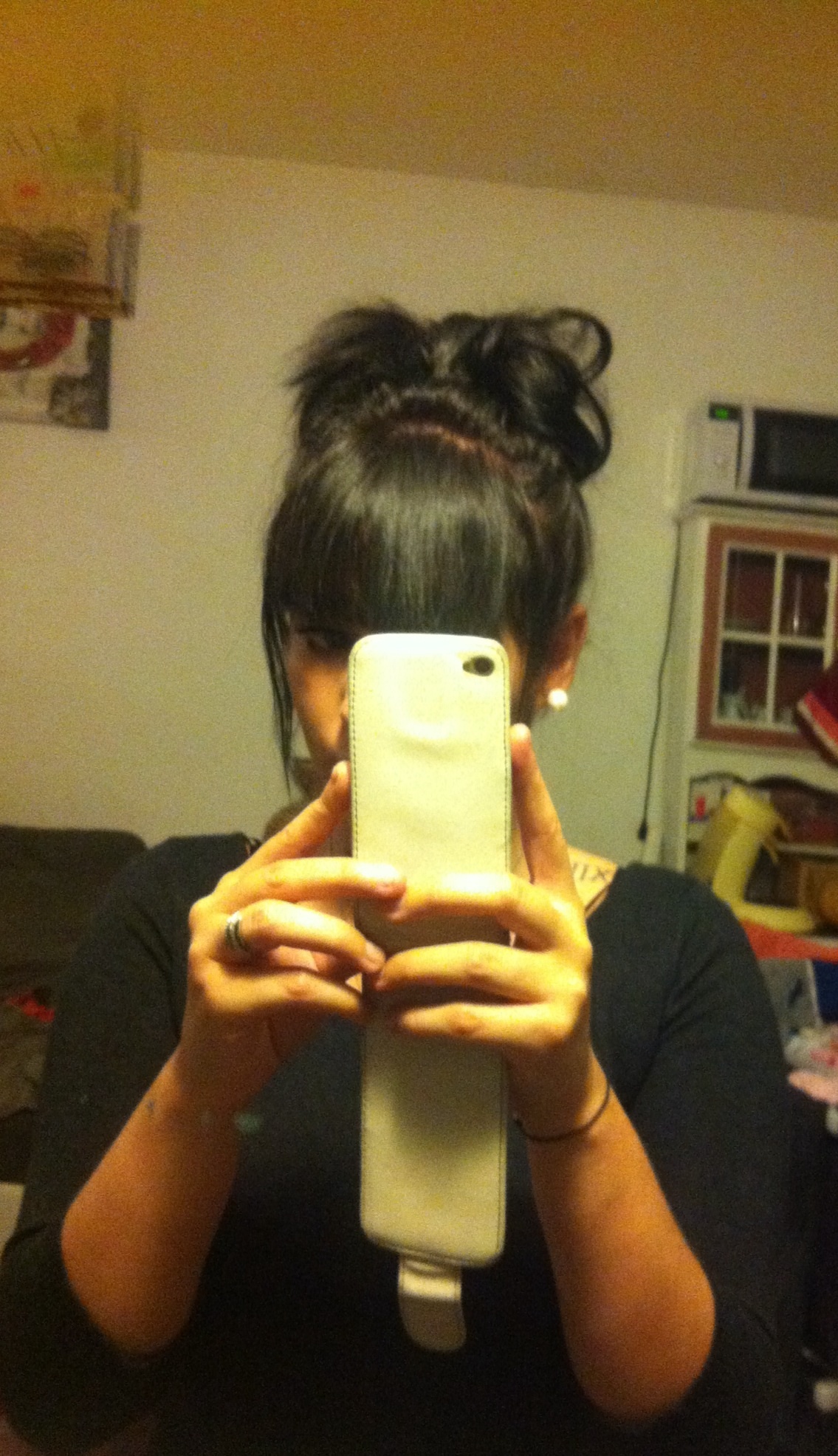 Et j'ai tenter de faire un nœud dans mes cheveux ... Bon résultat bof j'ai un gros Kiki au sommet de la tête .... Lol