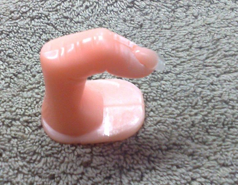 voici un doigt d'apprentissage avec un ongle réalisé ( rapidement ) en gel uv avec chablon ( forme ) pour tester l'efficacité du doigt d'apprentissage.