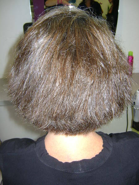 3ème photo: cheveux séchés dans tous les sens sans même passer les doigts dedans.