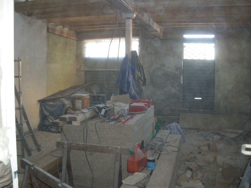 donc photo 1 la cuisine et photo 2 et 3 la pièce principale là ils sont en train de me mettre les poutres pour soutenir l'étage au dessus, ils scellent tout ce we puis ils me mettent le pafond, ensuite faut doubler les murs, mettre l'électricité, aussi une vasque dans la pièce principale et changer l'évier de la cuisine, changer les vitrines, changer les stores, refaire le carrelage + toute la déco peinture etc etc !!