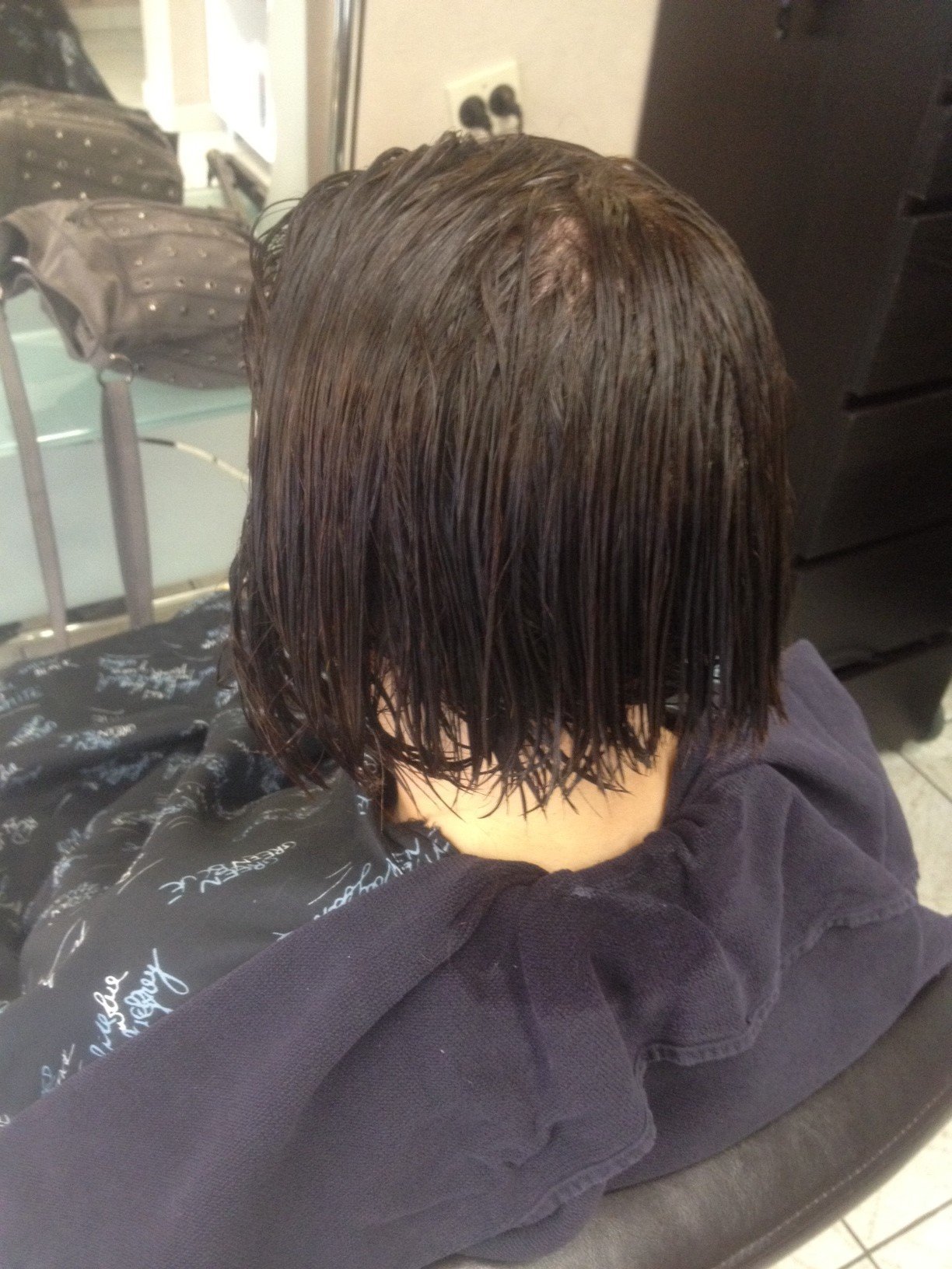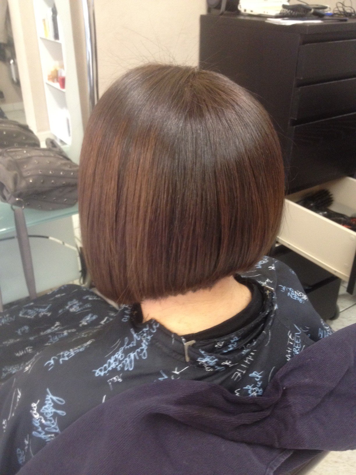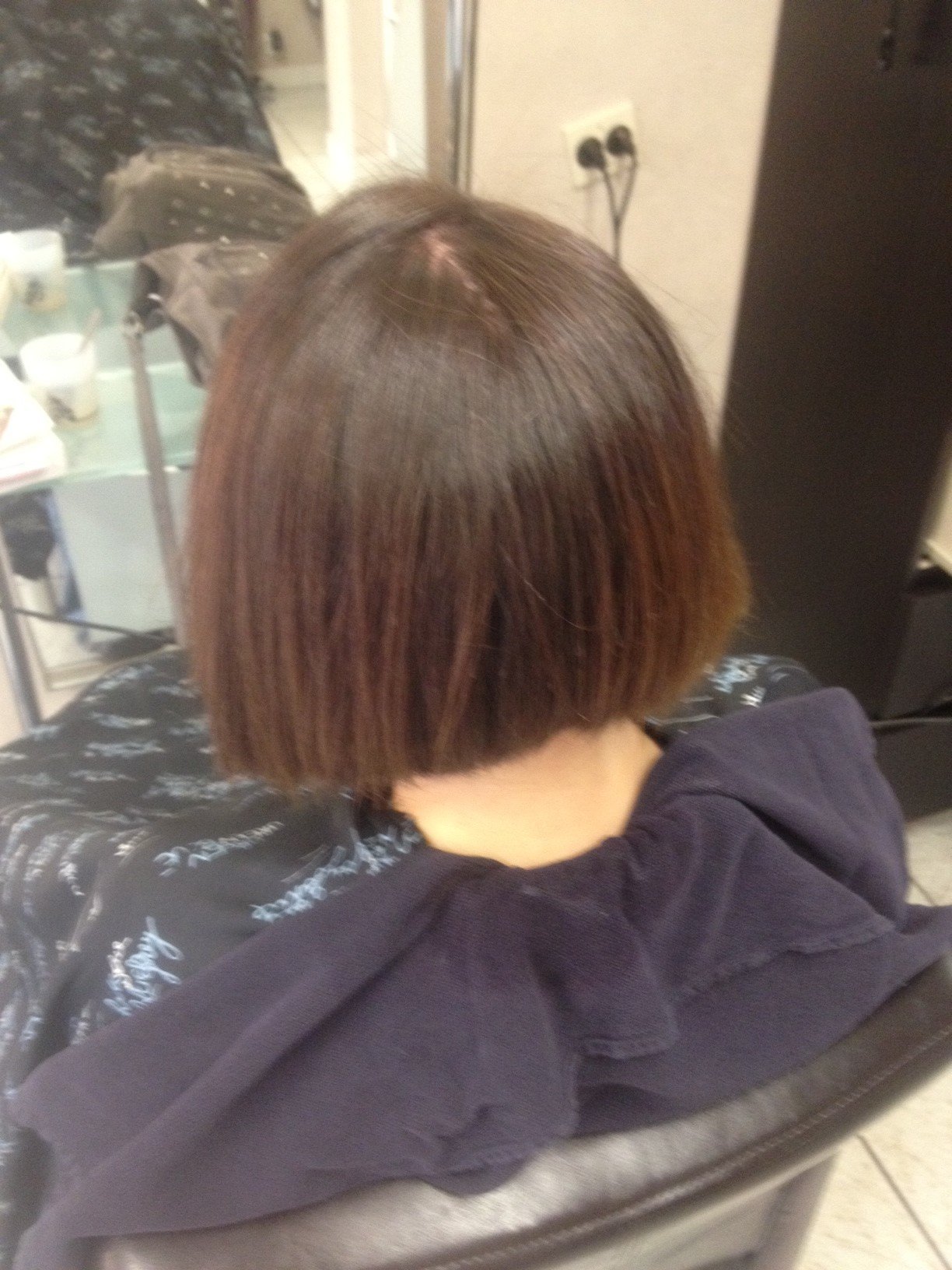 resultat de mon lissage bresilien thermique + soin keratine sur carré plongeant , cheveux tres bouclés