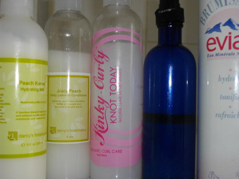 -produits hydratants (leave in de darcy botanical, et lait capillaire,knot today des ricaines, je le laisse pour ma fille, ces cheveux sont plus souples, vapo maison, et brumisateur)
