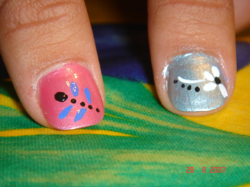 voilà n'ayant toujours pas mon matos depuis ma formation je fais avec les moyens du bord une déco sur les ongles de ma fille de 12 et demi.