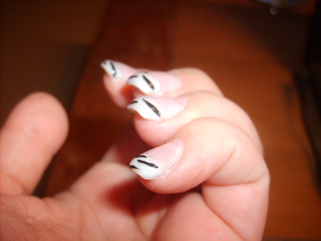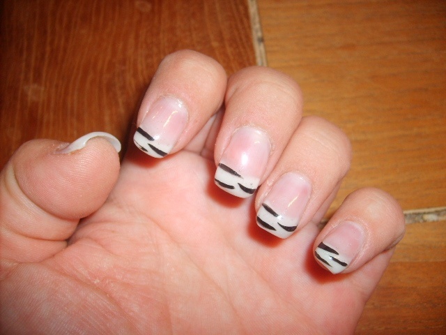 Lors du limage tout s'est bien passé (entièrement fait à la lime car pas encore de ponceuse électrique) dur dur sans la ponceuse mais disons que ça me fait la main ;-). Ensuite, premier problème rencontré avec mon gel de base hum hum assez bizarre, je l'applique en fine couche comme conseillé par ma soeur (celle-ci est esthéticienne et a suivi une formation en pose d'ongles en gel), je catalyse et là gros hic je sors la main et remarque que le gel a fait comme des trous lors du passage sous la lampe (ça ressemblait à un nid d'abeille), je décide de remettre une deuxième couche le problème disparait (je précise que j'avais bien appliqué le gel partout et uniformément) je me suis dit que cela était peut être dû à la mauvaise qualité du gel. Ensuite j'ai commencé la french, pas évident de faire le sourire et gel trop fluide il coulait sans arret grrrr, ensuite le gel de construction pas assez épais, je décide donc de le mettre 30 minutes au frigo, cela m'a bien aidée, de fait il était plus dur et plus facile à travailler pour faire le bombé. Je lime pour donner une forme bien nette à mon bombé et pourquit en appliquant le gel de finition (je précise que j'ai utilisé le même gel que le gel de base, produit allemand, dans le kit 1 phasen gel klear, 1 phasen gel pink et 1 gel uv french), j'en ai donc déduit que le gel phasen était un monophase c'est peut être là mon erreur???donc après avoir appliqué le gel de finition de nouveau meme problème après catalyse grrrr des petits trous partout, j'ai donc repassé une fine couche puis ok.